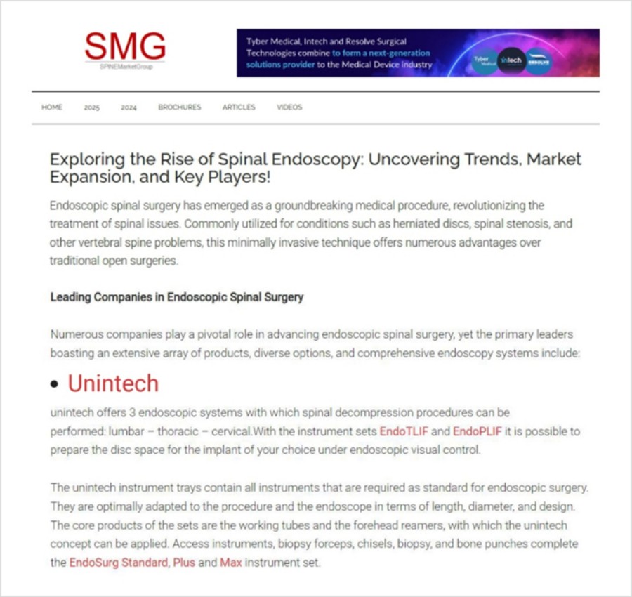懋煜医疗旗下UninTech品牌被SMG评为”全球脊柱内镜技术行业领军企业之一”
