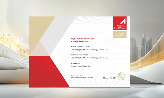 懋煜医疗在国内舞台大放异彩的同时,此次也在国际创新设计领域取得了突破性进展。懋煜医疗凭借自主设计研发的“创新脊柱内窥镜”项目,从全球数万个申报项目中胜出,成功斩获美国好设计奖(American Good Design)金奖!