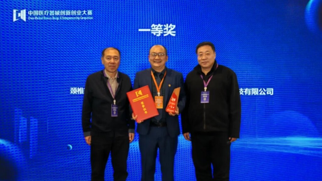 在第八届(2025)中国医疗器械创新创业大赛中,懋煜医疗的“颈椎前路脊柱内镜手术系统”项目凭借其独特创新性和临床实用性,从近千个优秀项目中脱颖而出,一举斩获外科微创器械组第一名及全国总决赛一等奖!