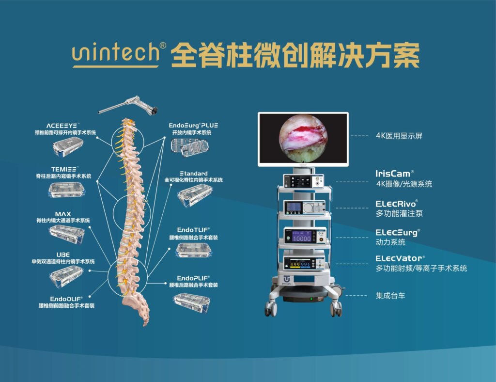 作为全球脊柱内窥镜行业领军企业之一,懋煜医疗(UninTech®)始终秉持“联合创新,开放共享”的理念,深耕行业二十载,致力于脊柱内窥镜全产业链产品的研发、生产和销售。深刻洞悉客户需求,融合国内和国际顶级临床经验,对脊柱内镜技术实现理念创新、技术创新、产品创新;为客户提供提质增效的产品解决方案和技术解决方案,为推动生物医药产业的技术进步与产业升级作出了积极贡献。
