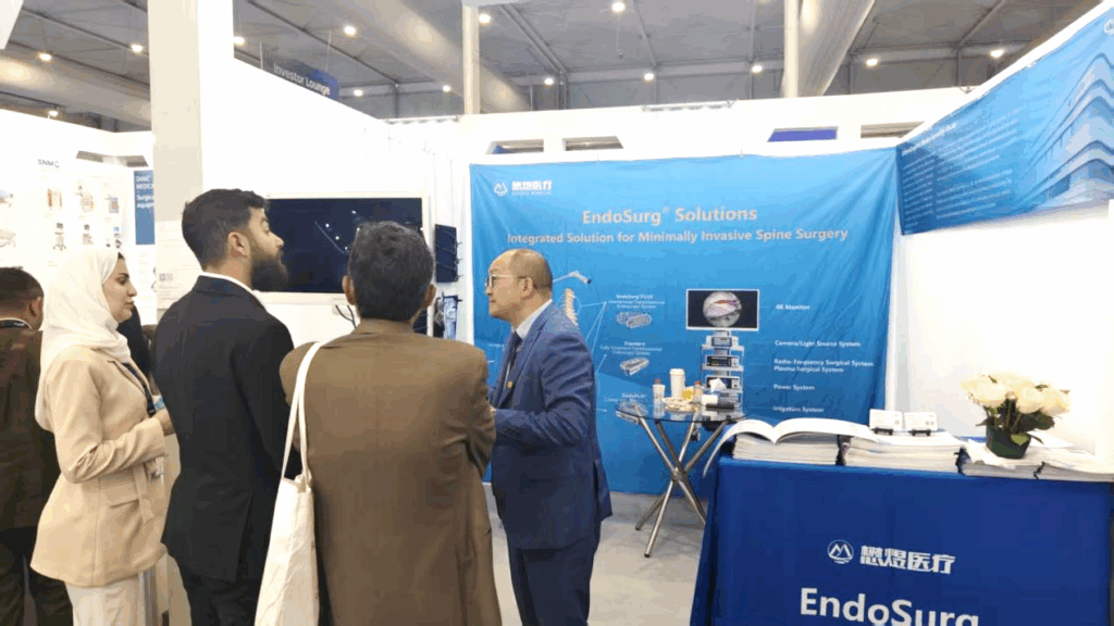 作为全球脊柱内窥镜全产业链的领先企业,懋煜医疗携旗下与中国脊柱微创专家共同研发的EndoSurg®脊柱内镜系统及多项创新转化成果惊艳亮相,旨在与中东乃至全球的医疗同仁共话合作、共享经验,携手推动微创脊柱技术的普及与进步!